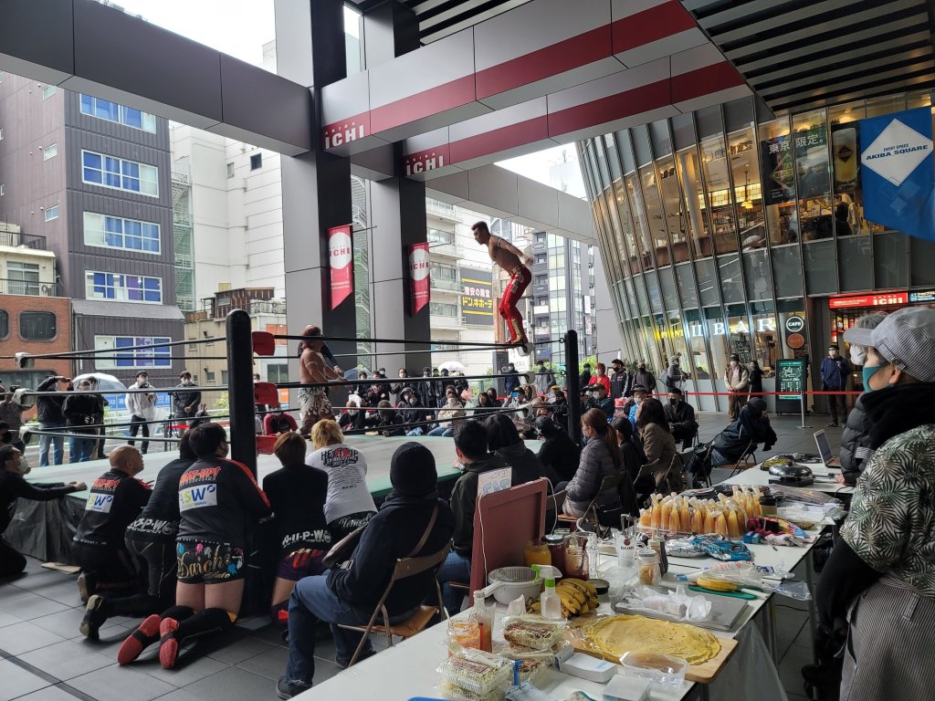 シアタープロレス花鳥風月 4月3日 秋葉原UDX大会 キッチンカーでの販売予定でしたが あいにくの雨☔のため リングサイドのスペースをいただき クレープ販売させていただきました。 シアタープロレス花鳥風月 4月3日秋葉原UDX大会